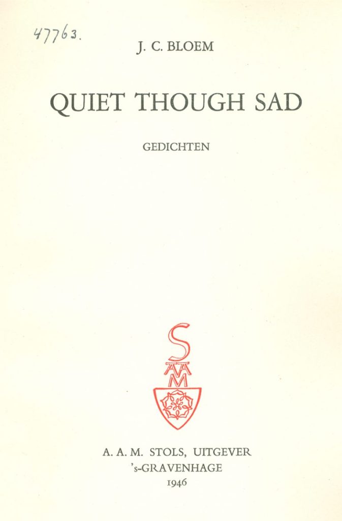 * Bloem, J.C.1947, gedicht uit bundel: ‘Quiet though sad’