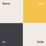 The Observe-Orient-Decide-Act loop shows that all decisions are based on observations of the evolving situation tempered with implicit filtering of the problem being addressed. It is about steering in, sometimes high, dynamics. The concept of OODA was developed by military strategist and United States Air Force Colonel John Boyd. He applied the concept to the combat operations process, often at the operational level during military campaigns. It is now also often applied to understand commercial operations and learning processes. The approach explains how agility can overcome raw power in dealing with human opponents.
