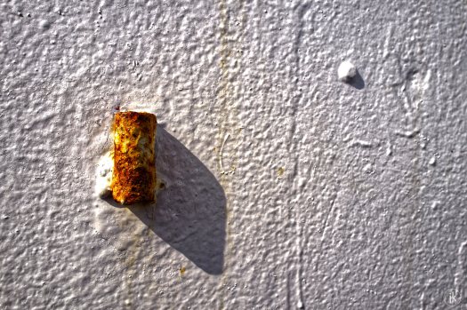 On the rough sea an anchor point can make all the difference. Here a close-up of one on the ferry Calais-Dover. The weather made its marks and create this honest palette.