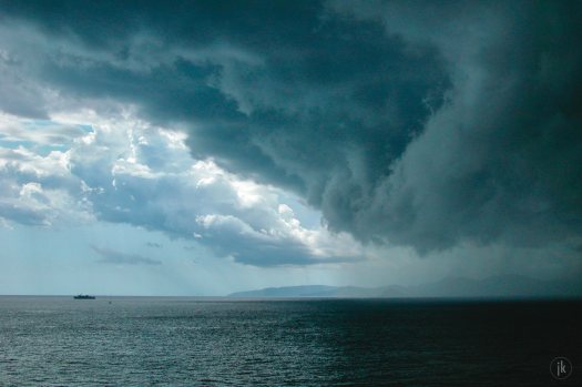 Storm is coming over Elba. The storm clouds hunt the ferry down and will soon role over it. It was between the Italian mainland and this mystic island, by the way on a beautiful summer’s day. It is one of those moments in life when seeking shelter and safety for this storm and rain was really urgent and factually last second. It was short but fierce.