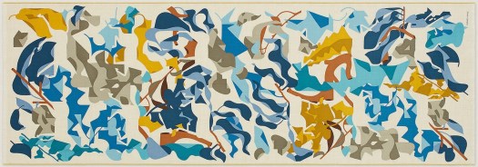 These colours of Hermēs are exceptional. “What strange vegetation this is, fashioned by Anne-Margot Ramstein’s illustration of curves intertwined with superimposed lines. Branches, flowers and leaves become entangled in a dreamlike camouflage…”