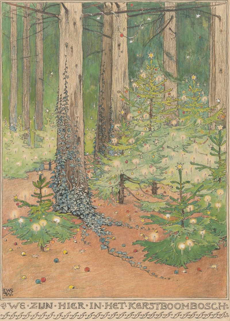 Ik wens u een mooi Kerstfeest! Dit is dus dat beroemde bos (door Willem Wenckebach, 1898). Het bos bereidt zich voor in al haar groeipunten op het nieuwe seizoen. Elk groeipunt is een symbolisch lichtje.
