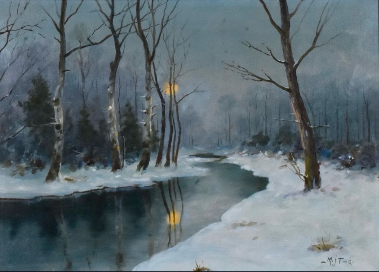 Een prachtige reflectie op een stille winternacht in het bos. Een moonlight serenade. Even een moment van rust om tot jezelf te komen. Laat de stroom gewoon even stromen.