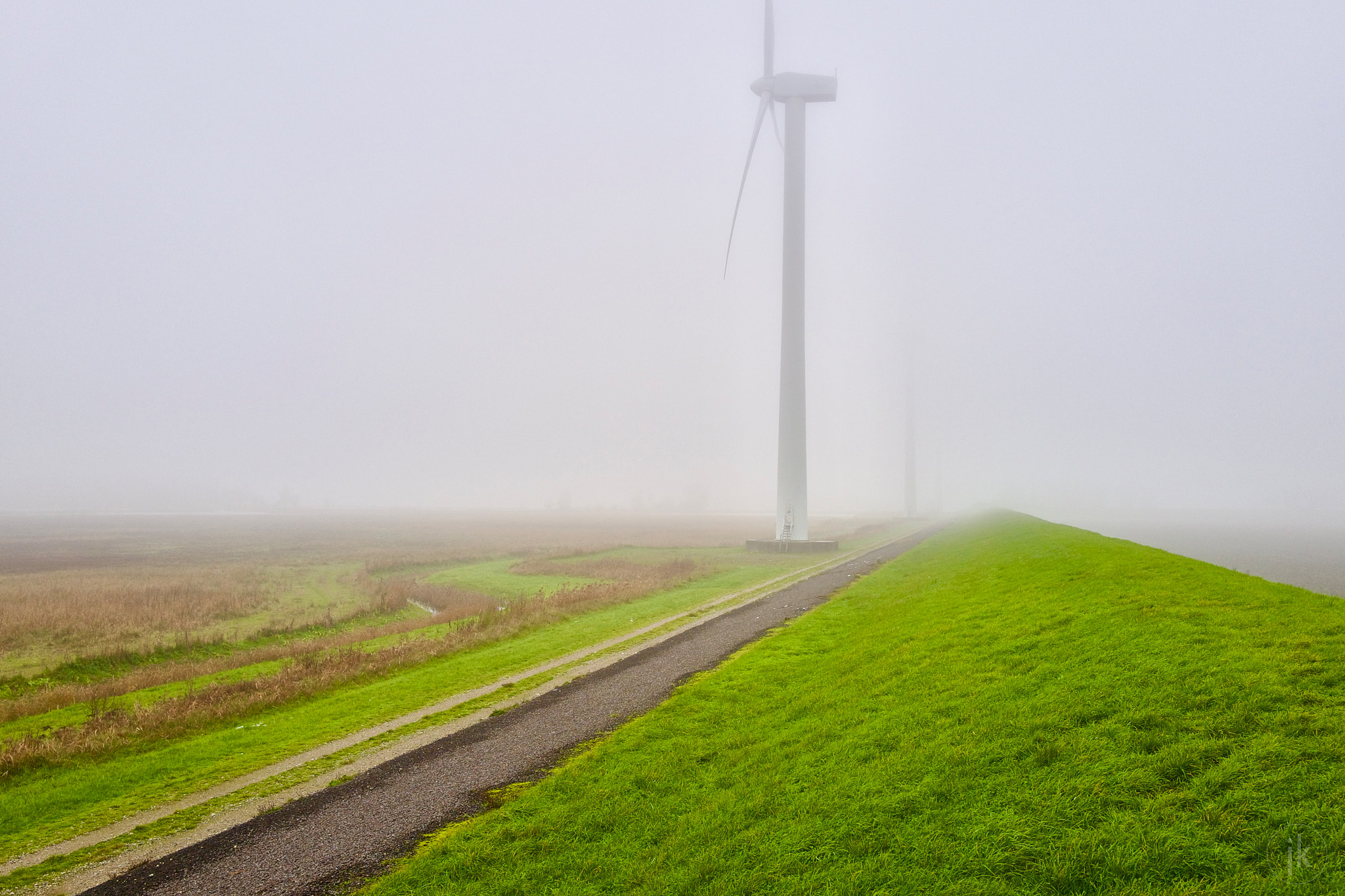 Vandaag was ik in de beslotenheid van dit mistige landschap. Wandelend met neef Walter. De ‘Halsterse Dijk’, een monument op zichzelf. Het gebied veranderde van het zoute getijdendeel van de Zeeuwse Delta in een zoetwatergebied. De Deltawerken spreken de taal van de vooruitgang en van veiligheid. De werken waren zo nodig na de overstroming van 1953.